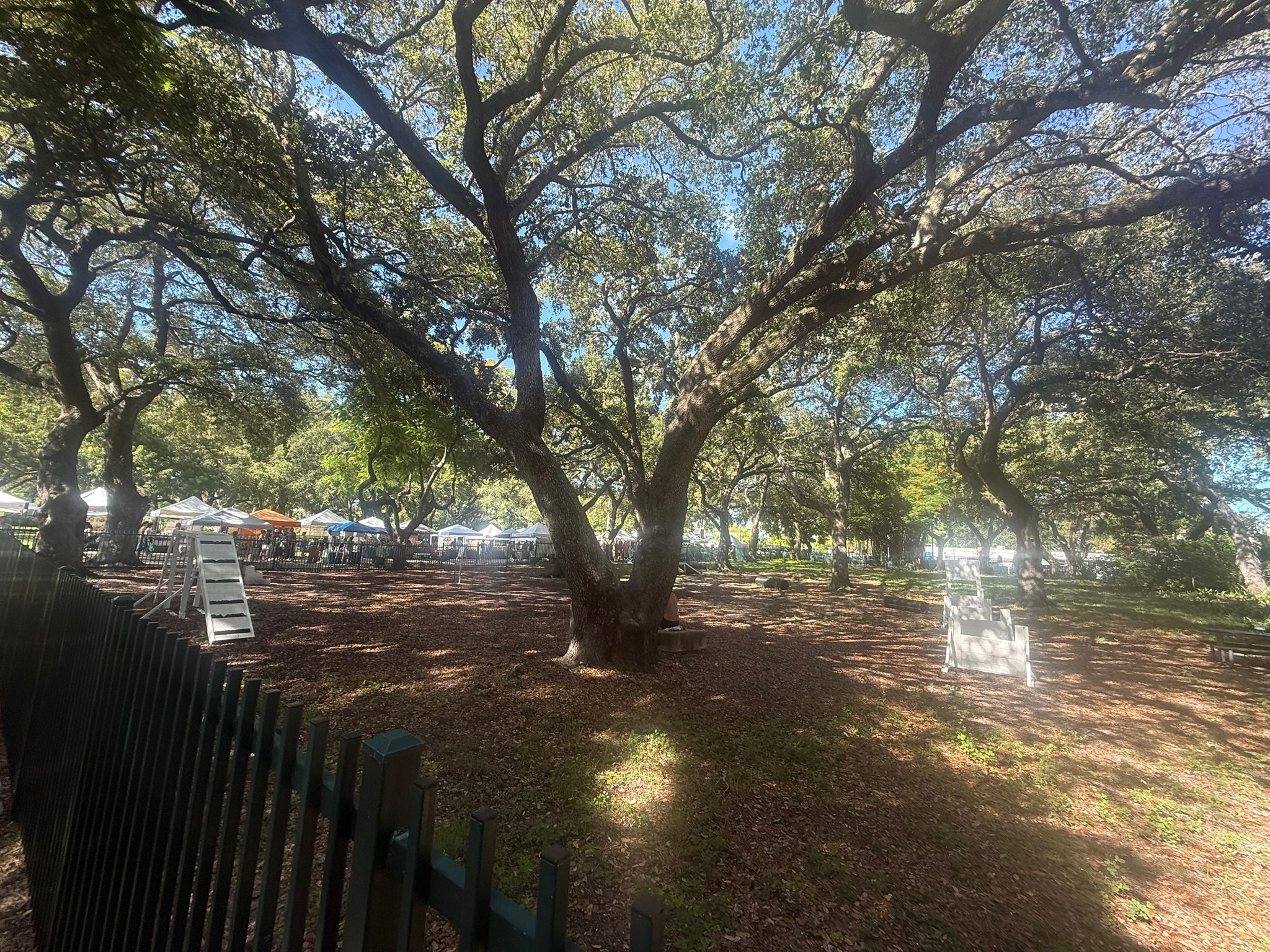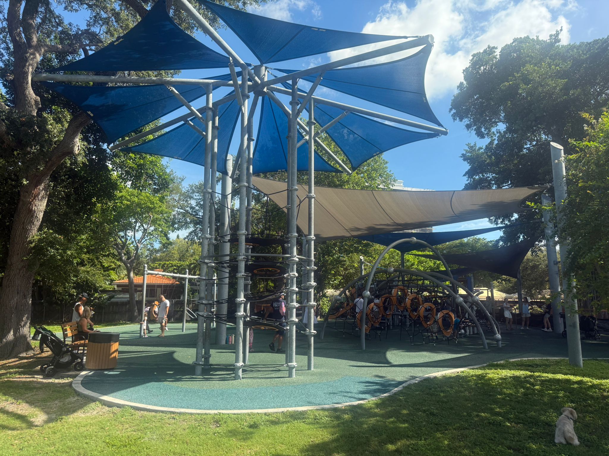 The park balances family play and pet-friendly spaces smoothly. Parents can relax under trees while kids climb, and the fenced dog runs keep canine chaos contained. Just keep leashes on outside the pens, carry bags for clean-up, and share space respectfully with the yoga crowd or market vendors.